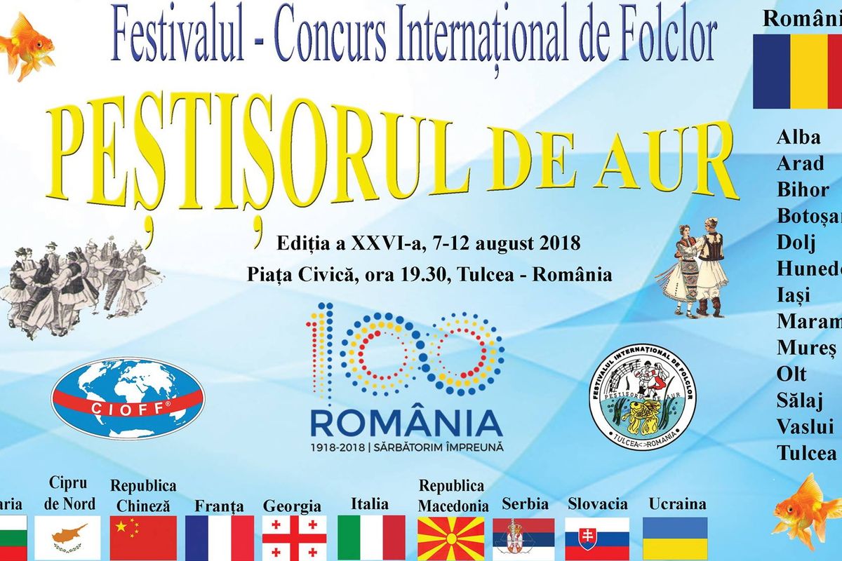 A XXVI-a ediţie a Festivalului – Concurs Internaţional de Folclor „Peştişorul de Aur” se va desfăşura la Tulcea în perioada 7 – 12 august a.c. Participanţi la această a XXVI-a ediţie a „Peştişorului de Aur”: ansambluri din Ciprul de Nord, Ucraina – Cernăuţi şi Khmelnytskyi, Italia, Bulgaria, Republica Macedonia, Slovacia, Serbia, Franţa, Republica Populară Chineză, Georgia; ansambluri din ţară: Arad, Mureş, Bihor, Maramureş, Alba, Sălaj, Dolj, Olt, Botoşani, Hunedoara, Iaşi; din judeţul nostru vor lua parte ansambluri din Casimcea, Jijila, Luncaviţa şi „Doruleţul” din Tulcea. La fel ca în ultimii ani, publicul tulcean va asculta Fanfara „Rotaria” din Vaslui, iar spectacole vor fi organizate, în afară de cele de pe scena din Piaţa Civică, în pieţele Neptun şi Vest. Programul festivalului: Miercuri, 8 august - ora 18:00 – Biblioteca Judeţeană „Panait Cerna” - Parada portului şi dansului popular pe traseul: str. Isaccei - str. Unirii - str. Babadag - str. Dobrogeanu Gherea – str. Păcii – Piaţa Civică. - ora 18:30 – Piaţa Civică – Deschiderea Festivalului Internaţional de Folclor „Peştişorul de Aur”, ediţia a XXVI-a - ora 19:30 – Scena din Piaţa Civică - Spectacol - Concurs Joi, 9 august - ora 18:00 - Piaţa Vest – Spectacol folcloric - Piaţa Neptun – Spectacol folcloric - ora 19:30 - Piaţa Civică – Spectacol – Concurs Vineri, 10 august - ora 18:00 - Piata Vest – Spectacol folcloric - Piata Neptun – Spectacol folcloric - ora 19:30 - Piaţa Civică – Spectacol – Concurs Sâmbătă , 11 august - ora 1930 – Piaţa Civică – Festivitatea de premiere şi spectacolul de gală.