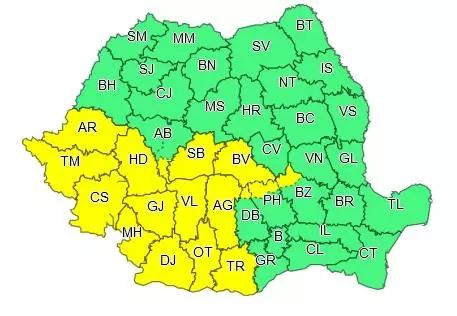 ATENȚIONARE METEOROLOGICĂ - COD GALBEN
