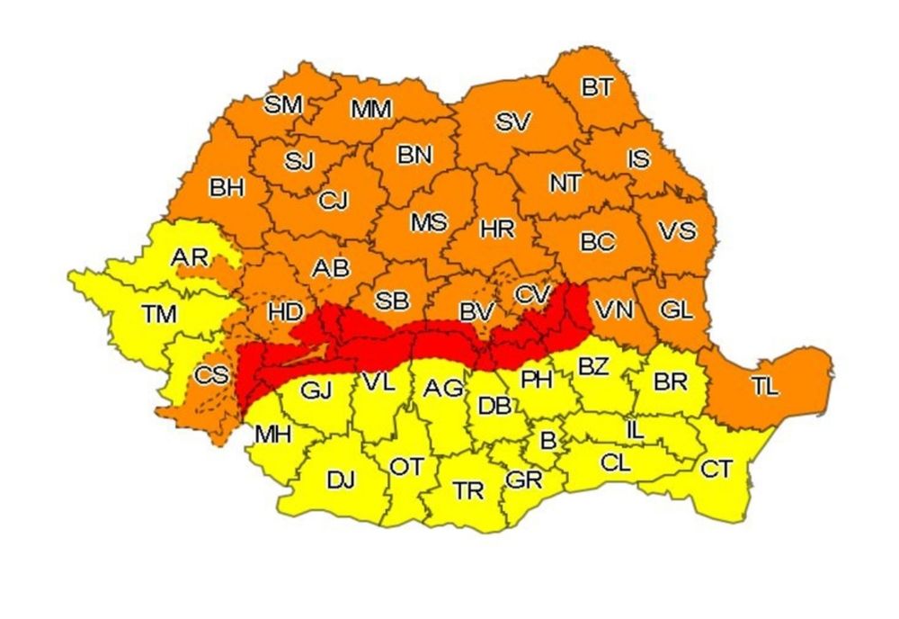 Cod roşu şi portocaliu de rafale în cea mai mare parte a României
