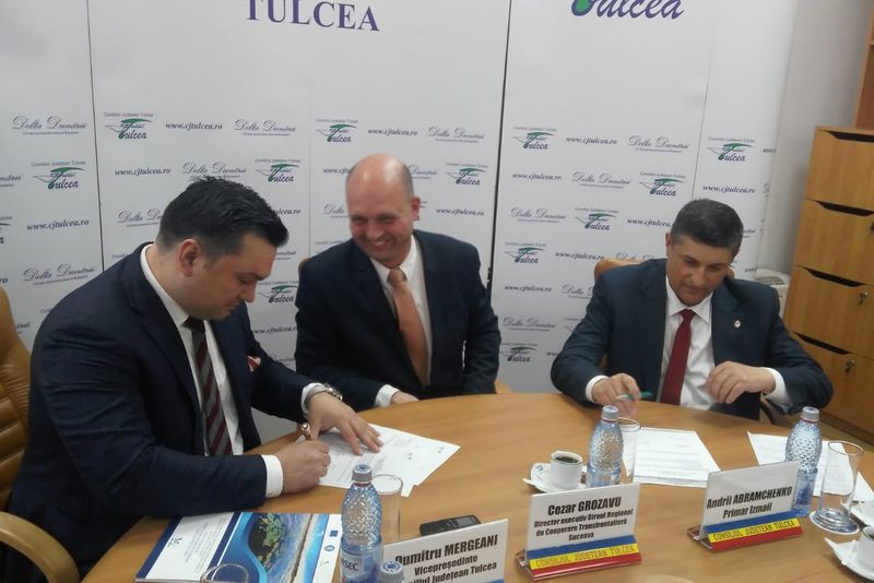 Azi, la Sala Dobrogea, vicepreședintele Consiliului Județean Tulcea, Dumitru Mergeani și primarul orașului Izmail, Andrii Abramchenko au semnat contractul de grant pentru proiectul „Infrastructura transfrontalieră de sănătate“, finanțat de Uniunea Europeană prin Programul Operațional Comun de Cooperare Transfrontalieră România – Ucraina 2014-2020.La eveniment au mai participat reprezentanții celorlalți doi parteneri din cadrul proiectului, respectiv Natalia Budescu, director al Asociației de Cooperare Transfrontalieră „Euroregiunea Dunărea de Jos” și Gheorghe Văcaru, primarul orașului Măcin, cărora li s-au alăturat Cezar Grozavu, director executiv al Biroului Regional de Cooperare Transfrontalieră Suceava, Igor Babaian, director al Agenţiei de Cooperare Transfrontalieră din Izmail și Valentin Stroia, director al Biroului atragere investiţii în cadrul Primăriei Izmail.Obiectivul general al proiectului privește îmbunătățirea accesului la sănătate în spațiul geografic al Euroregiunii Dunărea de Jos, prin îmbunătățirea infrastructurii de sănătate a județului Tulcea și a orașului Izmail, prin activități comune de reabilitare și dotare a patru spitale: Spitalul Judetean de Urgență Tulcea, Spitalul Măcin, Spitalul Regional Dunărean al Consiliului Regional Odesa și Spitalul Municipal Izmail.„Este un moment important pentru Tulcea și Izmail, un prim pas important după înțelegerea de cooperare semnată acum doi ani între Consiliul Județean Tulcea și Primăria Izmail.