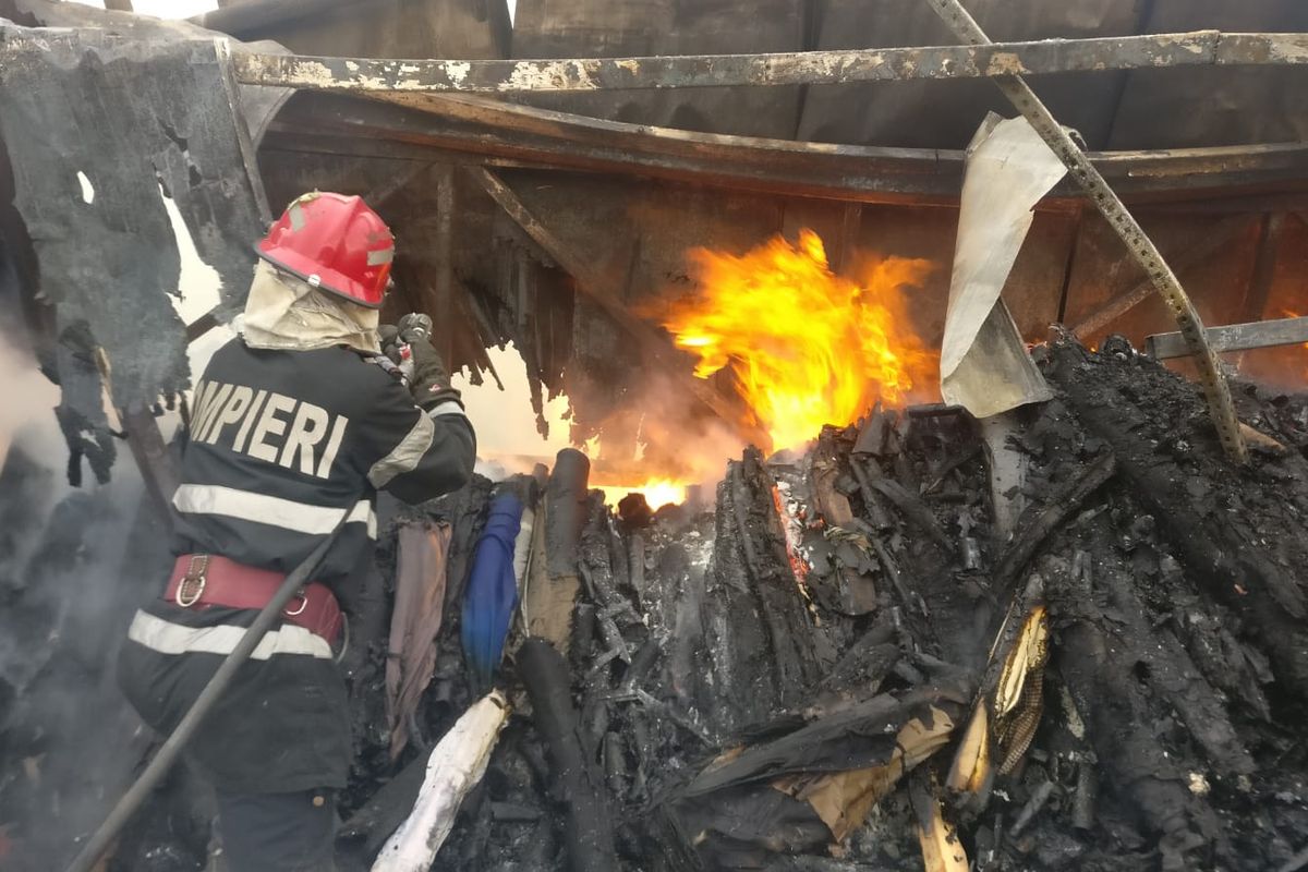 Incendiu x 2. Depozitul unei fabrici de textile şi o casă ard la Greci