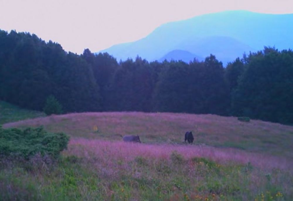 Imagini rare cu întâlnirea pașnică dintre un urs și un mistreț au fost făcute publice de Regia Națională a Pădurilor Romsilva pe pagina de socializare. Acestea au fost suprinse într-o zonă montană a județului Caraș-Severin.