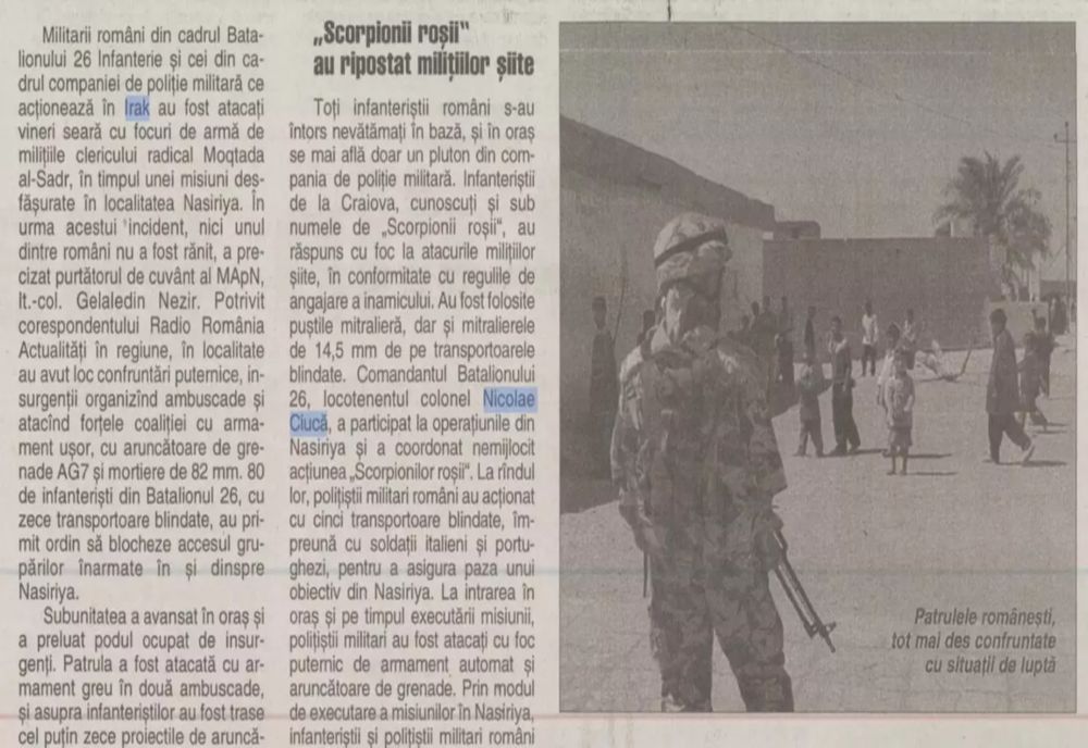 Andronic citează informații din presa vremii, subliniind că despre bătălia de la Nassiriya și rolul lui Nicolae Ciucă s-a vorbit imediat după confruntările militare de la acel moment.
