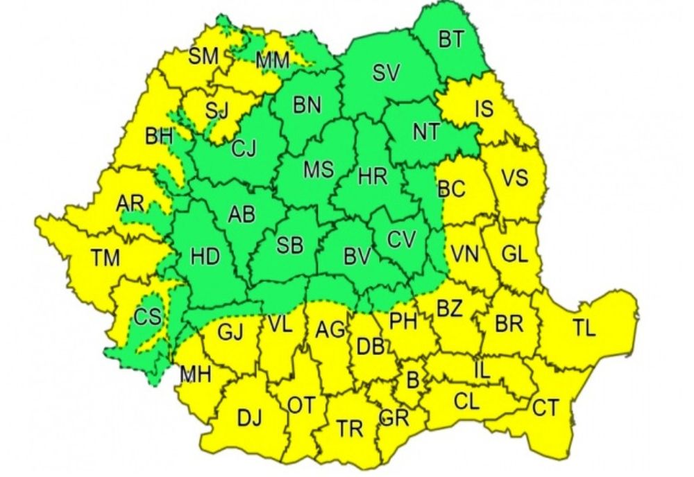 Codul Galben este valabil pentru 28, 29 și 30 august.