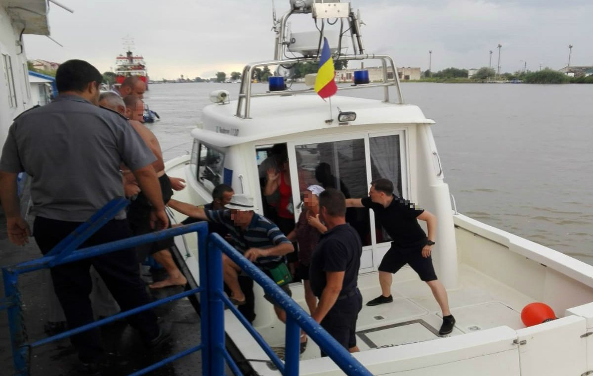 Poliţiştii de frontieră din cadrul Grupului de Nave Sulina au intervenit pentru salvarea a opt persoane care au căzut dintr-o barcă, în Dunăre, fiind în pericol de înec.