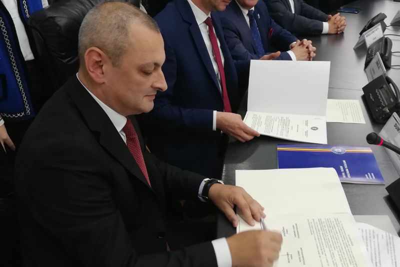 După o evocare a momentului 14 noiembrie 1878, ziua în care Dobrogea a redevenit pământ românesc, de către Raluca-Elena PETROV, Şef birou Arhivele Naționale ale României, secțiunea Tulcea, prefectul judeţului Tulcea, Lucian Furdui, a dat citire Protocolului dintre Instituția Prefectului- Județul Tulcea și Instituția Prefectului- Județul Constanța după care în cadru festiv s-a trecut la semnarea acestuia de către cei doi prefecți.