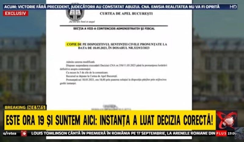 Mai mult, Realitatea PLUS a rezolvat problema cenzurii pentru toată presa din România! Grație demersului trustului de presă Realitatea Media, amenzile CNA nu vor mai fi plătite fără decizia instanței.