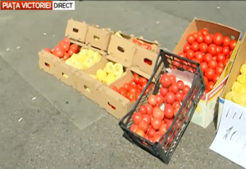 Organizatorii au adus în Piața Victoriei lădițe cu roșii, ardei și vinete.