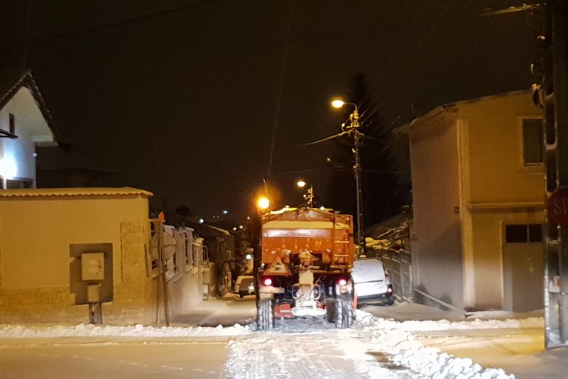 De la ora 2.00 din noapte şi până în prezent, utilajele Societăţii de Servicii Publice au fost scoase în oraş pentru a interveni la deszăpezire. S-a intervenit pe toate zonele, la început pe drumurile principale şi traseele de autobuze, iar spre dimineaţă, pe străzile adiacente şi în cartierele mărginaşe, acolo unde se afla utilajele şi în prezent.