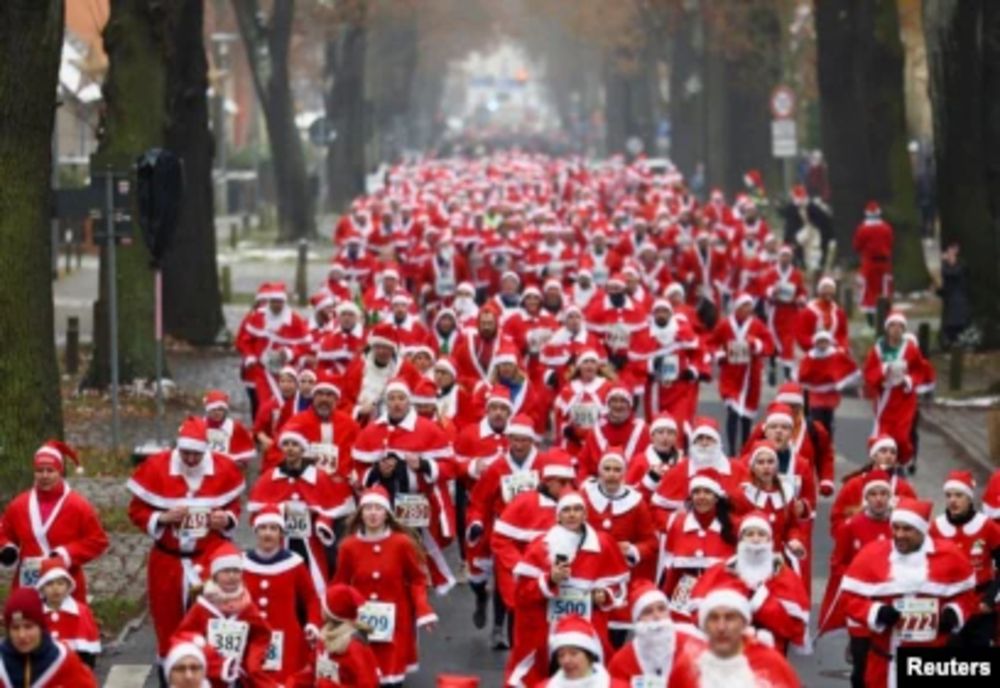 VIDEO| Sute de Moș Crăciun aleargă pentru a câștiga vin fiert