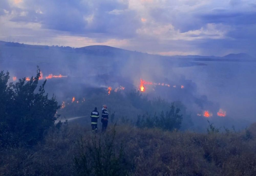 Incendiul, care a cuprins o suprafață de aproximativ 10 hectare de vegetație uscată și stuf, a fost lichidat după aproximativ 2 ore.