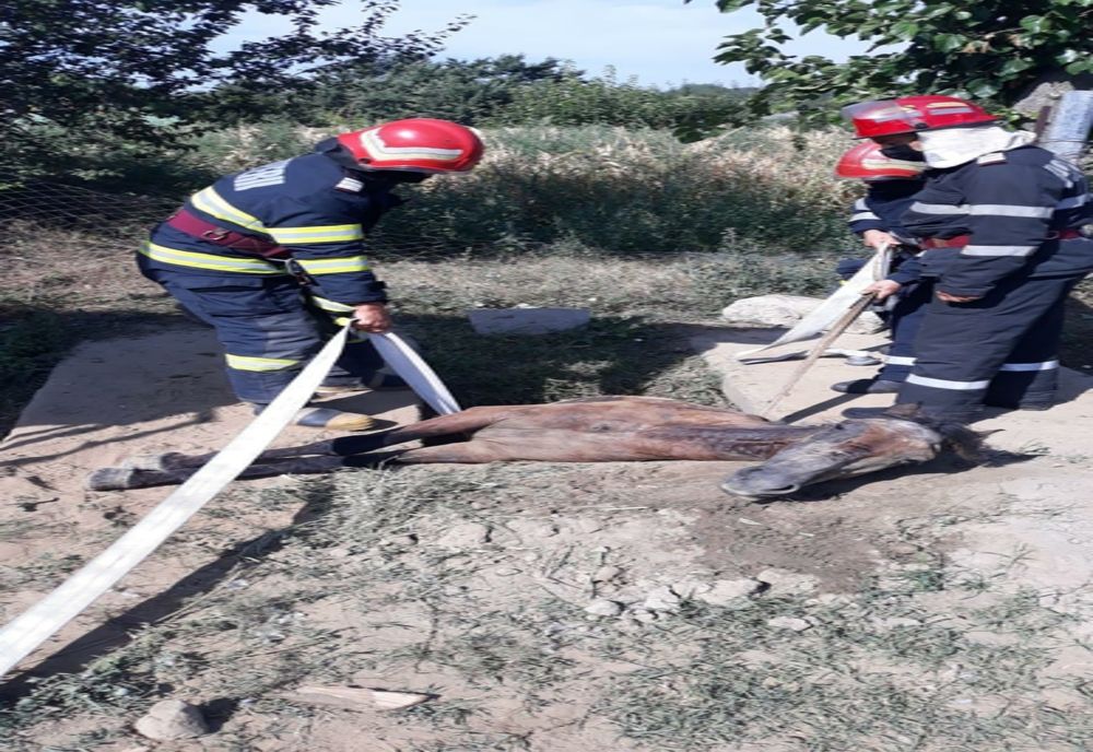Pompierii militari au intervenit cu furtunuri, cordițe și alte accesorii specifice unor astfel de intervenții și cu sprijinul unor localnici au reușit să scoată animalul teafăr și nevătămat.