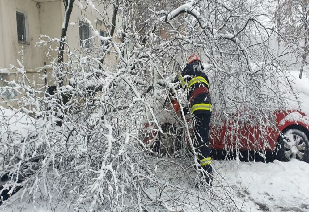 FOTO VIDEO Tulcea sub cod portocaliu. Copaci căzuți,mașini înzăpezite