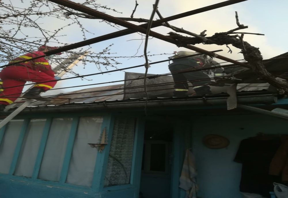 Au ars 20 mp pod din stuf și lemn și au fost deteriorați 40 mp acoperiș construit din tablă și lemn.