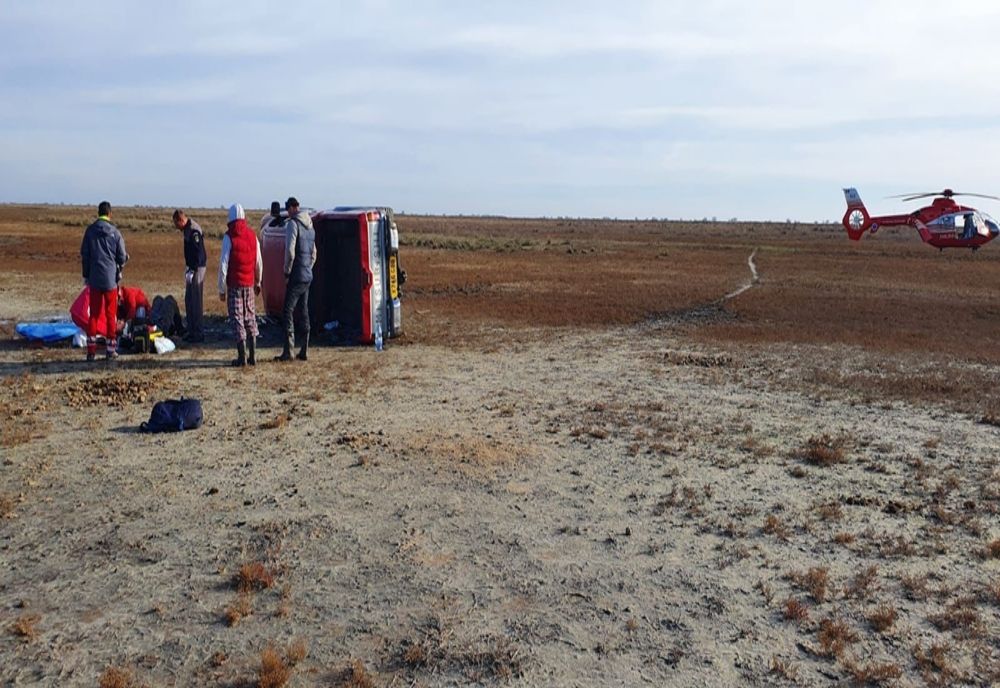 Mașină răsturnată în zona Perișor în Delta Dunării. Intervine elicopterul SMURD