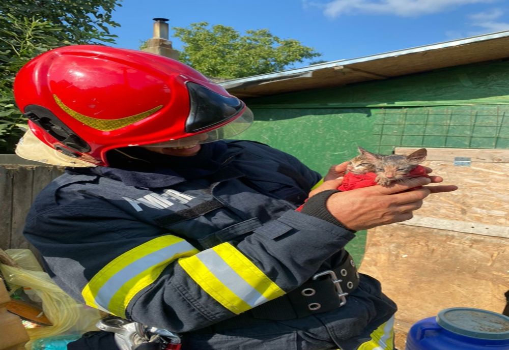 PompierIi militari au fost solicitați să intervină pentru salvarea unor pui de pisică blocați într-o țeavă de aerisire a unei fose septice dezafectate din municipiul Tulcea.