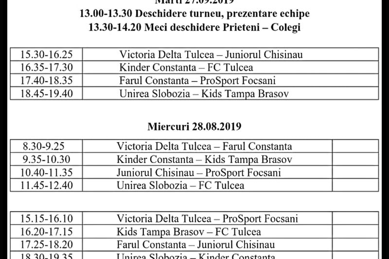Vor participa echipele Farul Constanța, Kinder Constanța, FC Tulcea, Juniorul Chişinău, ACS Kids Tâmpa Braşov, Pro Sport Focşani, Unirea Slobozia şi Victoria Delta.Din motive apărute în ultimul moment, Dinamo, FC Voluntari şi Oţelul nu au mai putut face deplasarea la Tulcea.Intrarea este liberă, motiv pentru care sunt aşteptaţi la stadionul Delta din municipiu, toţi iubitorii sportului rege, care, pe lângă meciurile memorialului, vor avea parte şi de bucuria revederii cu foştii internaţionali Miodrag Belodedici şi Jean Vlădoiu.