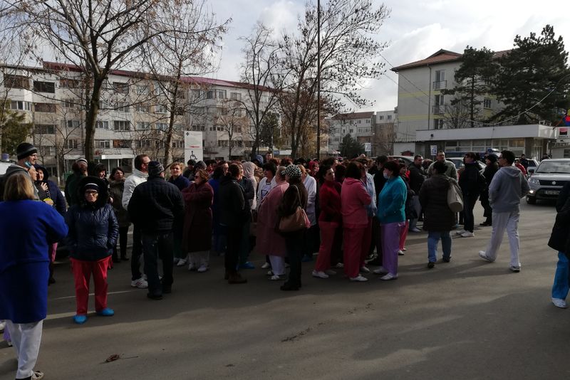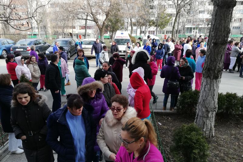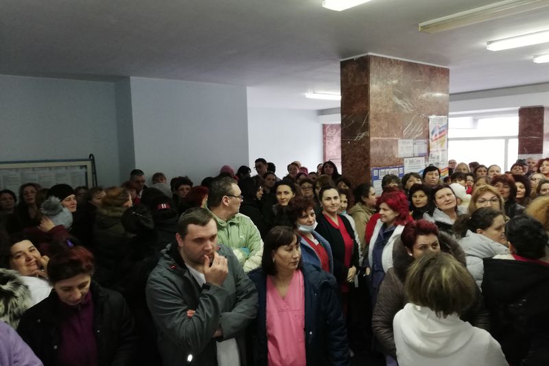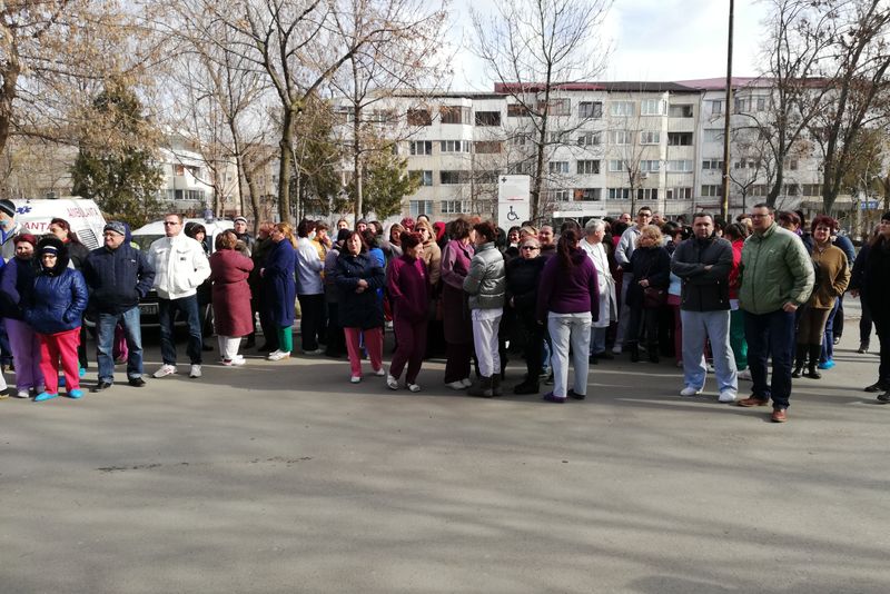 Azi după amiază, începând cu orele 13.00, în jur de o sută de angajaţi ai Spitalului Judeţean de Urgenţă Tulcea au protestat pentru a doua zi consecutiv pentru că le-au fost tăiate salariile.