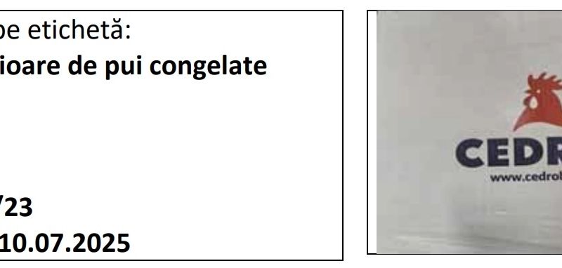 ANSVSA retrage de la comercializare carne de pui de la producătorul Cedrob S.A.
