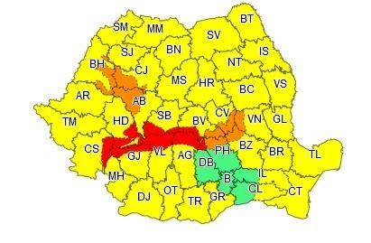 Administrația Națională de Meteorologie a emis noi atenționări cod roșu, portocaliu și galben de vreme severă, valabile în aproape toată țara. Care sunt județele ferite de fenomene extreme.
