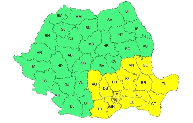 În intervalul menționat, în Muntenia, Dobrogea și sudul Moldovei vor fi perioade cu averse torențiale, local însoțite de descărcări electrice și intensificări de scurtă durată ale vântului. În intervale scurte de timp sau prin acumulare cantitățile de apă vor fi de 20...25 l/mp și izolat de peste 30...40 l/mp.