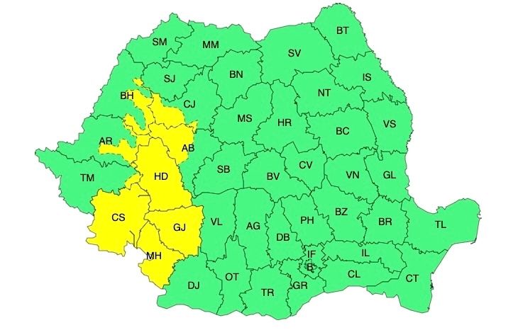 COD GALBEN (10 septembrie, ora 21 – 11 septembrie, ora 15) INSTABILITATE ATMOSFERICĂ, AVERSE ÎNSEMNATE CANTITATIV