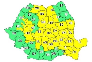 La munte, în Dobrogea, local în Muntenia, Transilvania, Moldova, Maramureș și nordul Olteniei vor fi perioade cu instabilitate atmosferică accentuată. Aceasta se va manifesta prin averse torențiale, descărcări electrice, intensificări ale vântului și pe alocuri vijelii și grindină. În intervale scurte de timp sau prin acumulare cantitățile de apă vor depăși 25...40 l/mp și pe arii restrânse 50...70 l/mp.