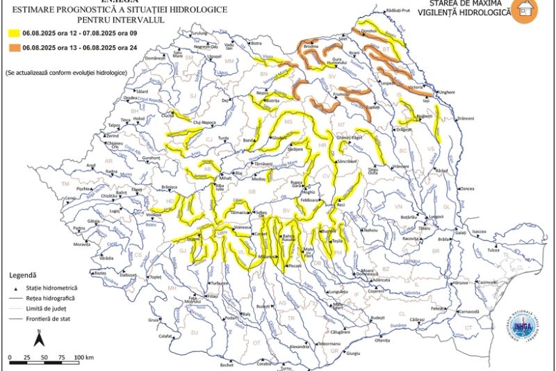 ”Fenomenele vizate constau în scurgeri importante pe versanţi, torenţi şi pâraie, viituri rapide pe râurile mici, cu posibile efecte de inundaţii locale şi creşteri de debite şi niveluri, precum şi probabilitatea depăşirii cotelor de apărare. În acest context recomandăm populaţiei din zonele vizate să manifeste prudenţă sporită în apropierea râurilor, să evite traversările prin vaduri sau poduri afectate, să îşi asigure bunurile şi să fie pregătită pentru eventuale măsuri de evacuare preventivă. De asemenea, este esenţială respectarea indicaţiilor autorităţilor locale şi menţinerea unui contact permanent cu sursele oficiale de informare”, a transmis INHGA.