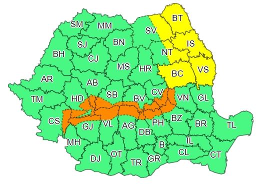 AVERTIZARE METEOROLOGICĂ - COD PORTOCALIU