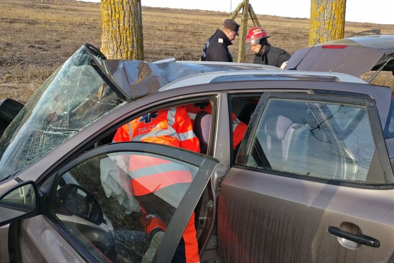 Femeia, aflată la volan şi pasagerul din dreapta au fost scoşi din maşină avariată de către pompierii mulitari şi predaţi ambulantei cu răni uşoare. Cei doi au fost transportaţi la spitalul din Tulcea şi se afla înafara oricărui pericol. Poliţiştii încă se afla la faţa locului pentru a stabili atât cauzele cât şi dinamica accidentului. cel mai probabil, cauza o reprezinta neadaptarea vitezei la condiţiile de trafic. Autoturismul ar fi derapat și a intrat în coliziune cu un copac, iar cele două persoane aflate înauntru au rămas blocate în mașină, motiv pentru care a fost solicitată descarcerarea.*****La nici jumătate de oră de la accidentul produs ître Izvoarele și Nalbant, în urma căruia două persoane au fost rănite, iată că echipajele de prima urgenţă au fost solicitate din nou, la un alt accident rutier, produs pe drumul către Agighiol, în jurul orei 9.30.