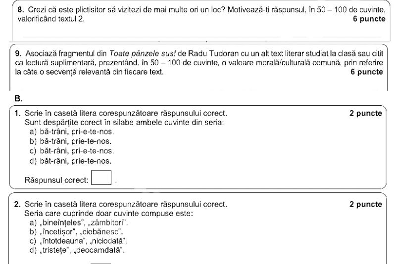 Evaluarea Națională 2022. Subiecte ROMÂNĂ Evaluare națională 2022. Iată care au fost subiectele: