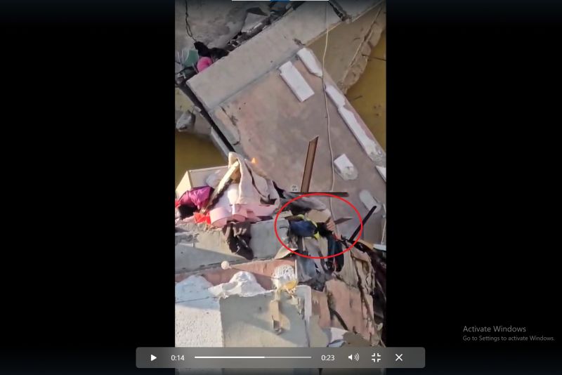 Imagini cutremurătoare au fost surprinse la scurt timp după explozie. Una dintre victime a rămas prinsă sub dărâmături și încearcă să ceară ajutor dând din mână.