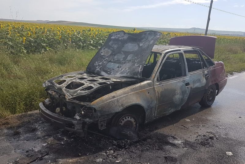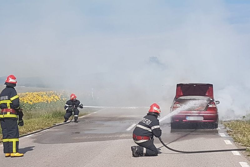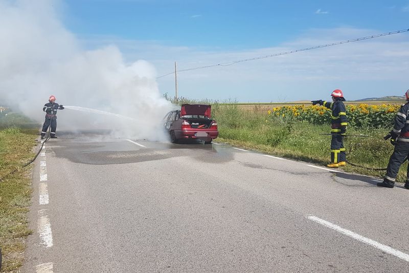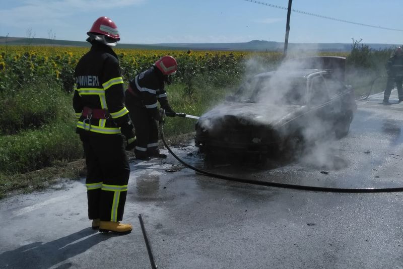 O mașină s-a aprins în trafic, lângă Frecăței