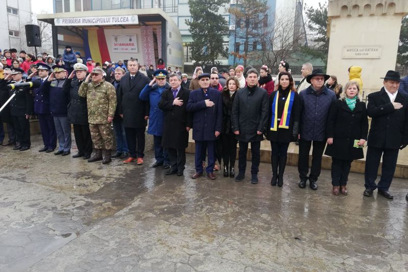 printr-un ceremonial militar și religios organizat de Garnizoana Tulcea, urmat de spectacolul „Uniți în cuget și-n simțiri. Hai să-ntindem hora mare!”, în organizarea Consiliului Județean Tulcea, a Primăriei Municipiului Tulcea și a Ansamblului Artistic „Baladele Deltei”. La manifestări au participat vicepreședinții Consiliului Județean Tulcea, Dumitru Mergeani și Petre Badea, administratorul public al județului, Vasile Strat, prefectul Lucian Furdui, viceprimarii municipiului, Andaluzia Luca și Petre Marinescu, deputații Mirela Furtună, Anișoara Radu și Vasile Gudu și comisarul general adjunct al Gărzii Naționale de Mediu, Octavian Popa,precum şi şefii structurilor militare ale judeţului .