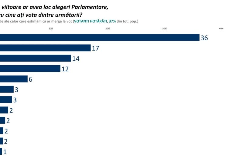 "AUR domină copios peisajul politic românesc, cu 36%, iar PSD începe să scadă sub nivelul simbolic de 20%", notează sociologul Mirel Paladă, directorul Sociopol.Acesta mai remarcă faptul că partidele așa-numit "prezidențiale" nu au beneficiat de pe urma victoriei lui Nicușor Dan. "PNL este doar la 14%, USR doar la 12%. UDMR la 6%."Pe de altă parte, partidele suveraniste POT și SOS România au scăzut puternic, 3%, respectiv 2%, iar "votul suveranist se concentrează în jurul lui AUR.Sondajul a fost realizat în perioada 26 – 28 mai 2025, pe un eșantion de 1,001 cazuri, prin metoda interviurilor telefonice (CATI), pentru uz propriu și este reprezentativ la nivelul populației adulte cu rezidența în România și prezintă o marjă de eroare de +/- 3.2%.